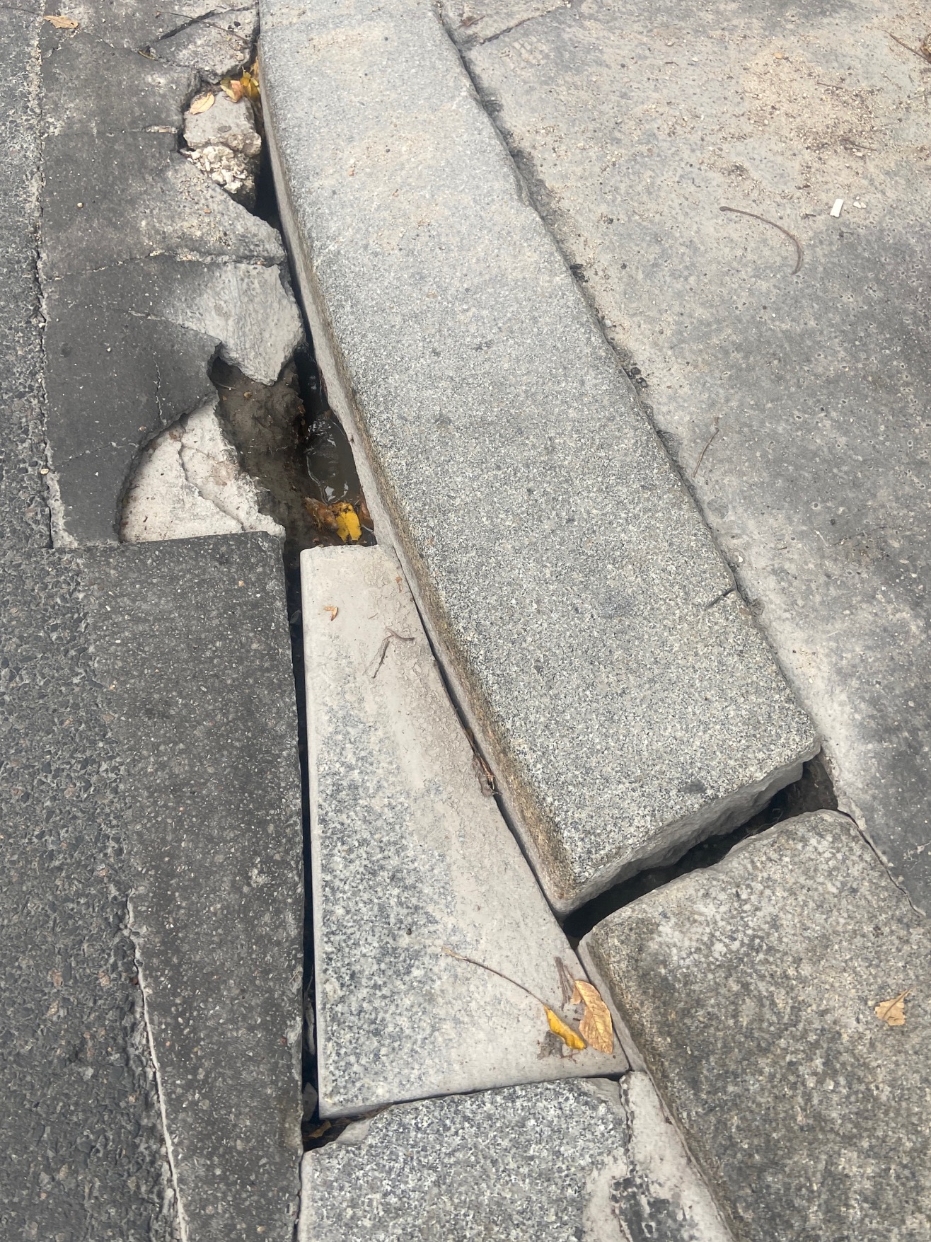 La voirie présente de sérieux risques : dalles et trottoirs affaissés, bordures détruites et chaussée percée de trous. Dans la rue Keller, plus de vin