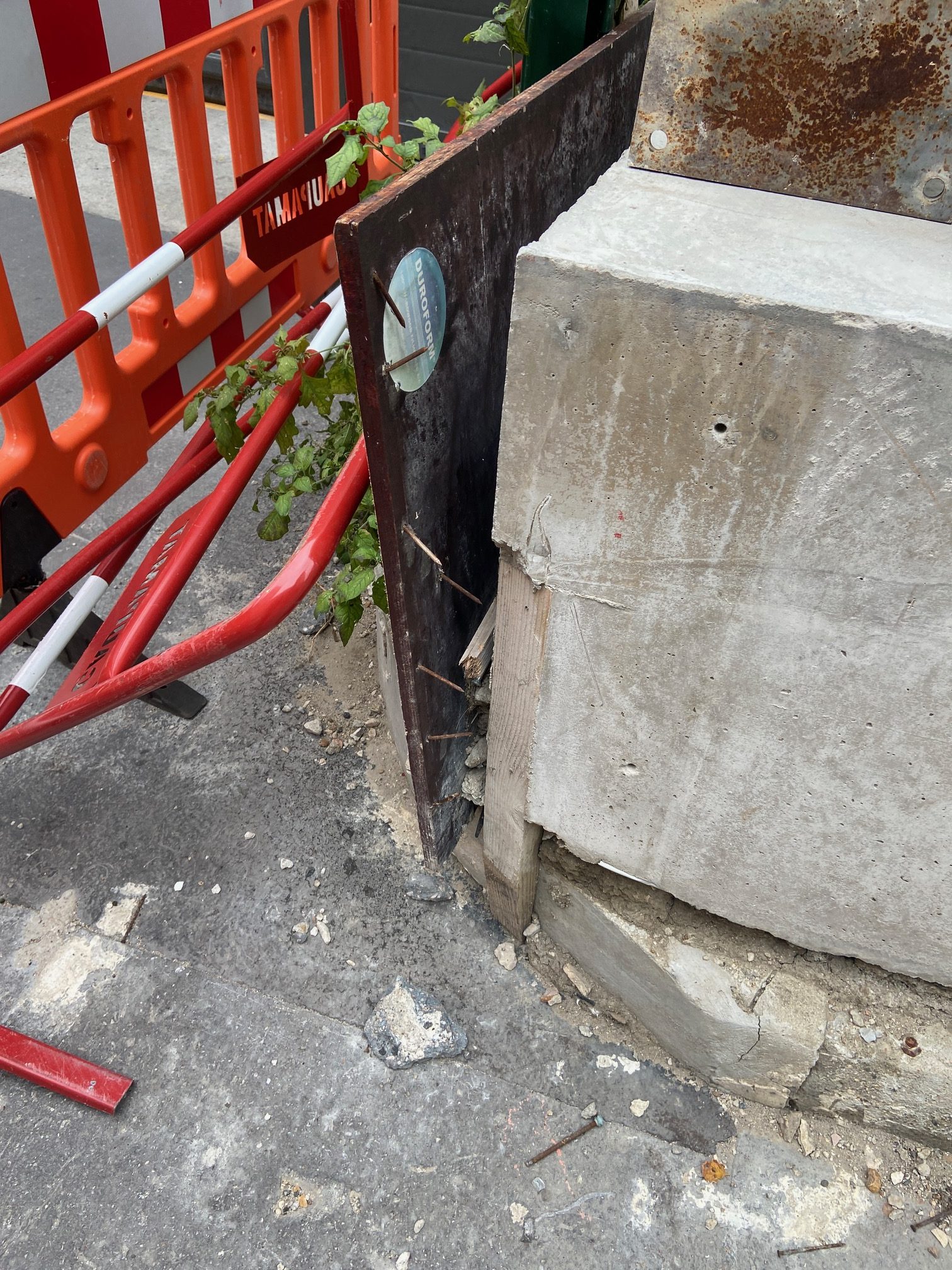 gt potelets ont été sc iés, laissant des cavités dangereuses et des arêtes tranchantes. Le chantier de la dalle Keller est abandonné et présente des risques pour les passants, avec coffrage en béton endommagés et pointes de clous saillantes. Des accidents ont déjà eu lieu, comme la chute d’une résidente de la Tour Keller qui s’est fracturée la clavicule.